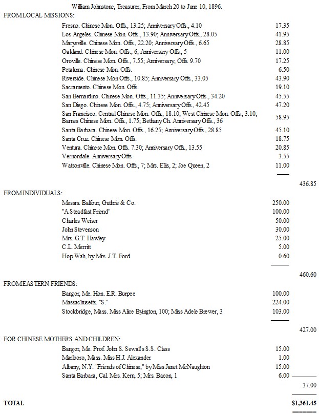 Treasurer—Mrs. J.M. Haven, 1329 Harrison Street, Oakland.