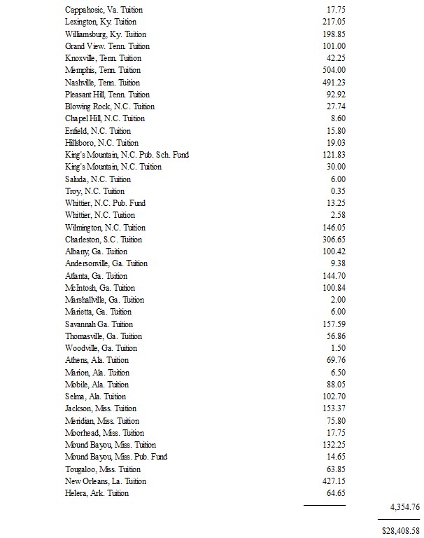Treasurer—Mrs. J.E. Moreland, 216 N. McNairy Street, Nashville.
