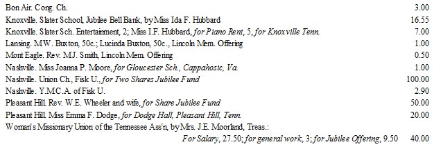 WOMAN'S MISSIONARY UNION OF THE TENNESSEE ASSOCIATIONPresident—Mrs. G.W. Moore, Box 8, Fisk Univ., Nashville.