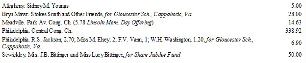 Treasurer—Mrs. T.W. Jones, 511 Woodland Terrace, Philadelphia.