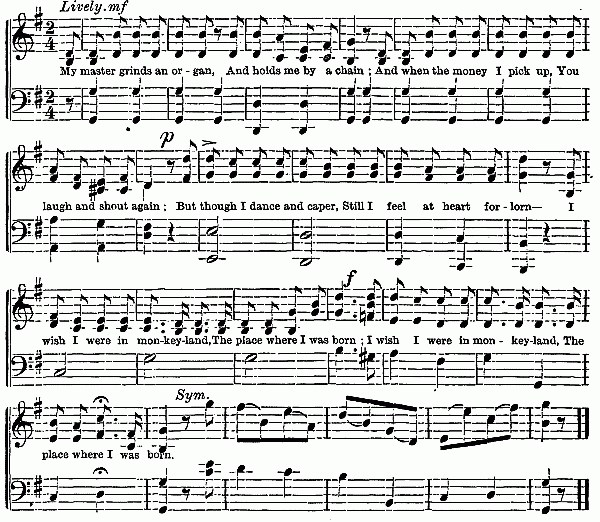 So Peepy took it into the grove, and set it free; and Bella lighted on a bough, and sang the sweetest song you ever heard. It then flew singing round Peepy's head, as if to say, "Thank you! thank you a thousand times, you dear little girl!" If Bella's song could have been translated into words, I think they would have been these:—