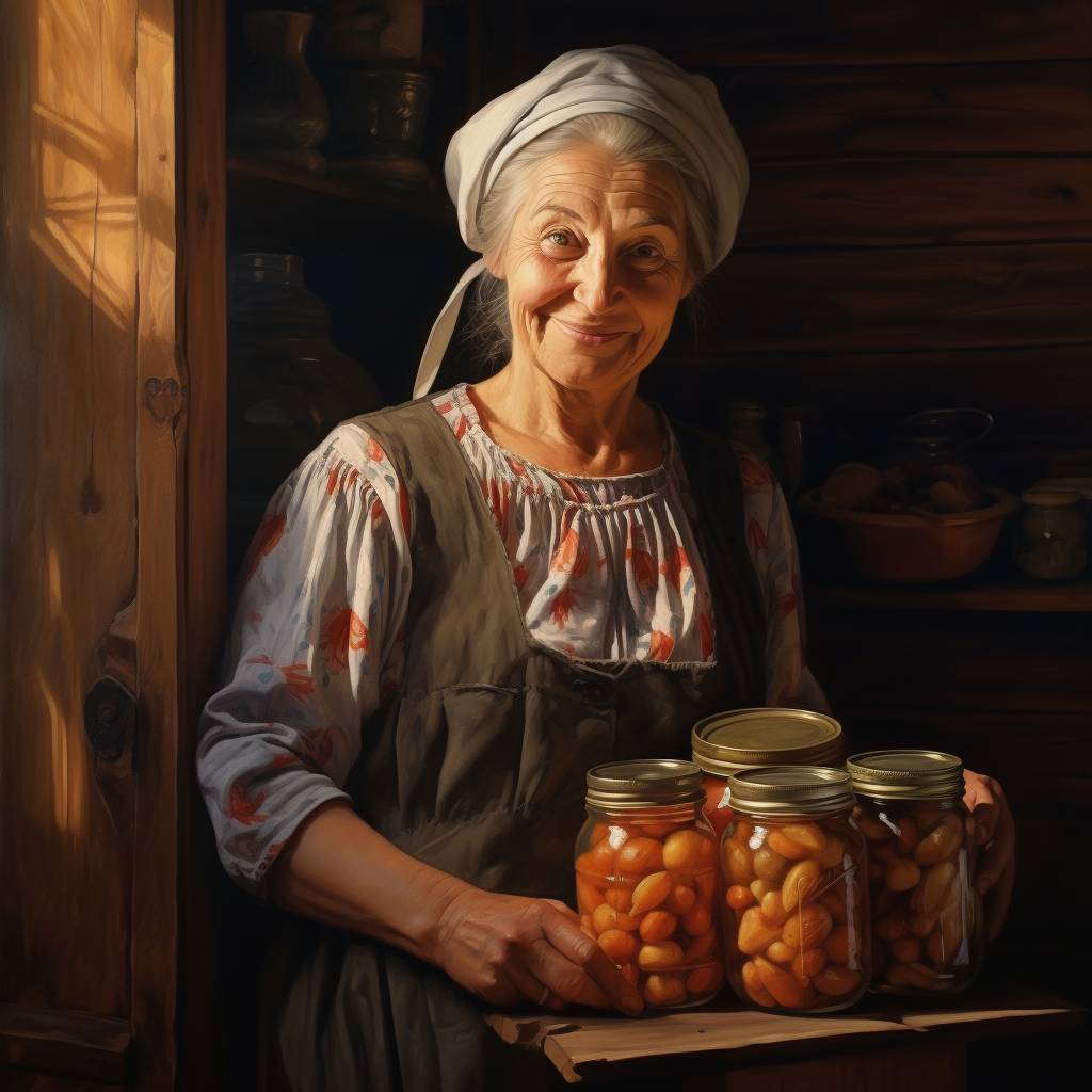 Когда-то давно, в небольшой деревушке глубоко в русской глубинке, жила старушка Марфа, известная своими невероятными кулинарными умениями. Она была настоящим мастером в создании заготовок на зиму, и ее дом всегда был наполнен ароматами домашних консервов.