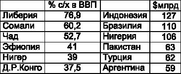 Современные аграрные страны можно разделить на два типа: первый – по доле сельского хозяйства в ВВП[26], второй – по размеру доходов от сельхозпроизводства[27]. Топ этих стран, во втором случае, за исключением монстров, таких как США, Китай и Индия, представлен в Таб. 1.