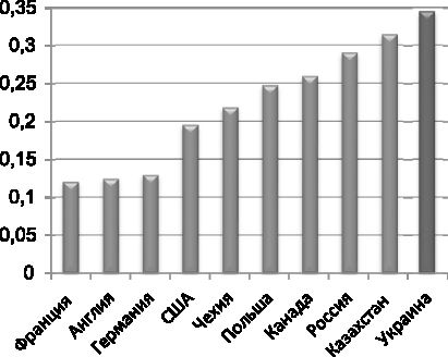 Расчеты индекса социального неравенства по капиталу, были проведены В. Галиным в 2012 г. для книги Политэкономия XXI в. В основе расчетов лежат данные о стоимости суммарных капиталов миллиардеров списка Forbes по основным странам, отнесенные к их суммарному ВВП за 20 лет. (20-ти летний период был взят для того чтобы оценить влияние на накопление капитала переходной эпохи 1990-х гг.) Расчеты сделаны как по текущему курсу доллара, так и по ППС[58].