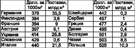 Таб. 2. Ценовая карта Газпрома, на 02.2013[50]