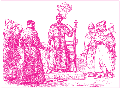 Я веду речь не об этой потребности, а об идее национального государства, о стремлении к политическому единству на народной основе. Эта идея возникает и усиленно разрабатывается, прежде всего, в московской правительственной среде по мере того, как Великороссия объединялась под московской властью. Любопытно следить, в каком виде и с какою степенью понимания дела проявлялась эта идея, которая не могла не оказать влияние на ход жизни Московского княжества. Видно, во-первых, что она вырабатывается под давлением изменявшихся внешних сношений московского великого князя. Потому первой провозвестницей ее является московская дипломатия Иванова времени, и уже отсюда, из государева дворца и кремлевской канцелярии, она проникает в московское общество.