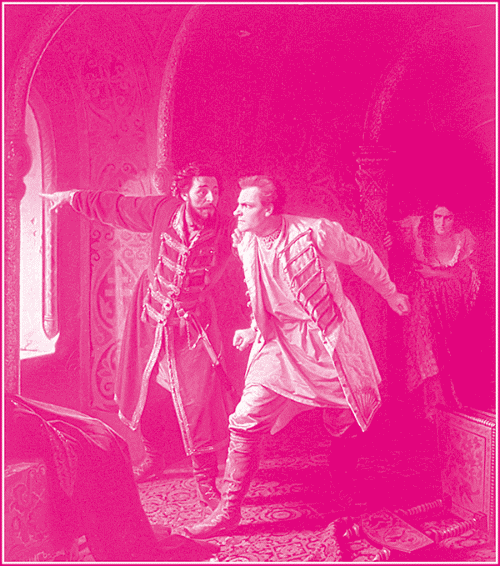 К. Вениг. Последние минуты Григория Отрепьева. Самозванец и Басманов в утро 17 мая. 1879 г.
