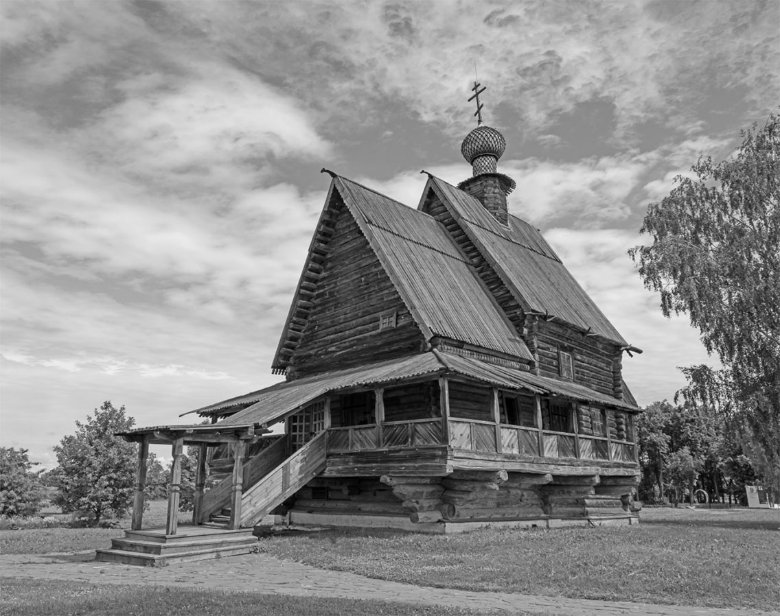 Дерево – материал недолговечный, и даже при самых благоприятных обстоятельствах в наших широтах деревянные постройки не могут сохраняться бесконечно долго. Камень и тот крошится от времени, а что о дереве говорить… Но, к счастью, у нас с вами есть возможность побывать в старинной деревянной церкви, которая мало чем отличается от той, в которой служил святитель Леонтий и другие первые епископы Суздальской земли, причем сделать это мы можем не выходя за пределы Суздальского кремля. Налюбовавшись всласть Колокольной башней, пройдите немного дальше, и за Рождественским собором увидите деревянную церковь, перевезенную сюда в 1960 году из села Глотово Юрьев-Польского района Владимирской области, где она стояла с 1766 года (!). Одновременно со сборкой на новом месте была произведена грамотная реставрация, так что церковь стоит будто недавно построенная, но при этом от нее пряно пахнет временем. Названа она в память о Николае Чудотворце, самом известном и наиболее почитаемом на Руси христианском святом.
