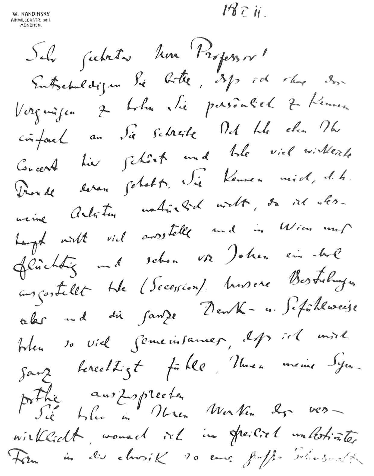 Если задаться вопросом, кто из больших художников определил пути развития изобразительного искусства и музыки в направлении модерна, то ответ, пожалуй, найдётся в эпистолярии Василия Кандинского (1866–1944) и Арнольда Шёнберга (1874–1951).