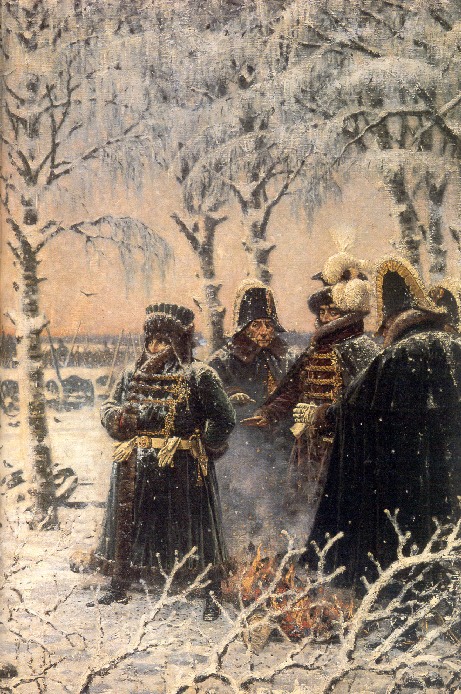 Войска мало понимали нерешительность поступков начальства относительно французов. Между солдатами слышно было, что «Сам», т. е. фельдмаршал, приказал не напирать крепко на отступающих и не доводить их до отчаянной обороны. Жаль! – всем хотелось поскорее окончить войну хоть бы уж потому, что хуже того, что было в этот зимний поход, не могло быть, пожалуй, и на том свете! Войска Милорадовича особенно терпели и принимали всего голода, холода и усталости! В то время, как главная армия двигалась сравнительно медленно, с дневками, они решительно не знали отдыха за ежедневными перемещениями: с фуражировок привозилось мало, люди и лошади насилу ходили, и убыль в них была очень велика. Солдаты ночевали на открытом воздухе, жарились и прожигали свои одежды около огней… В голодные дни Милорадович говорил, что «чем меньше хлеба, тем больше славы…».