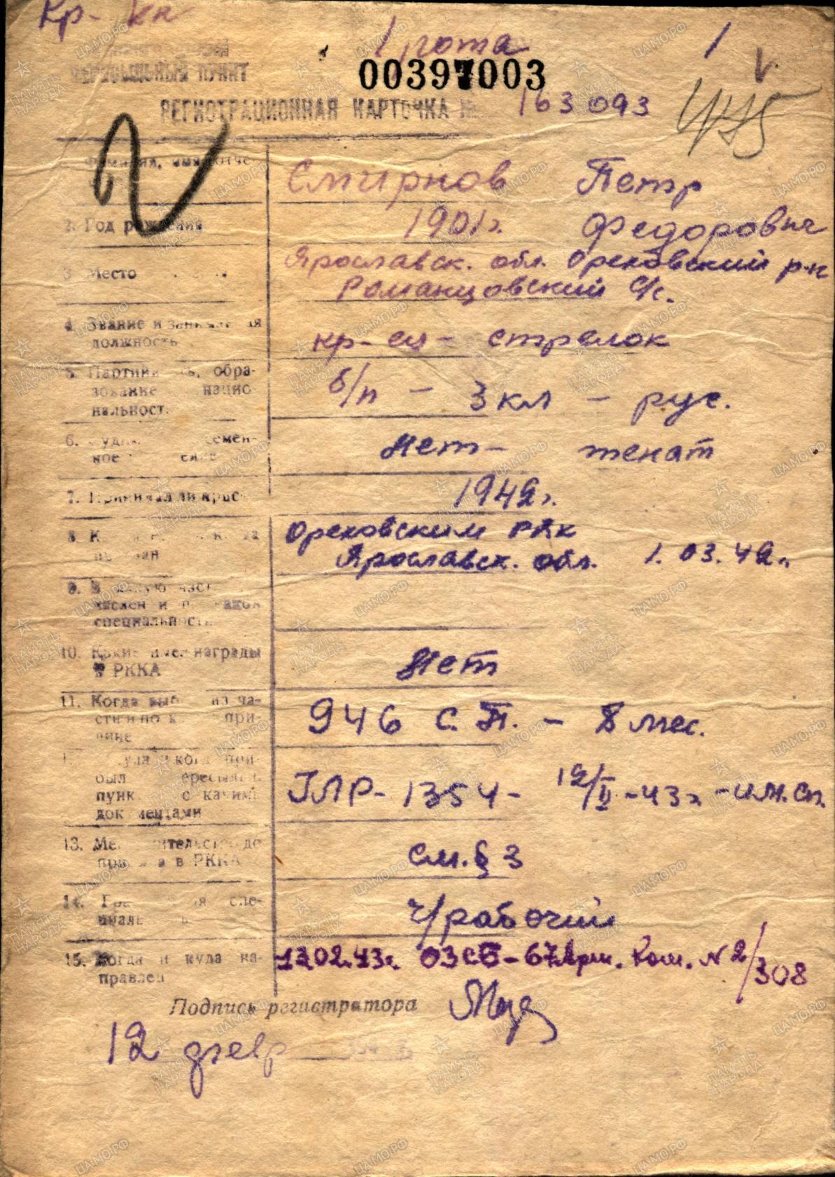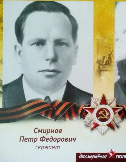 В мае 2009 года мы получили этот документ, и в нем написано, что «Командира пулеметного расчета 2 пулеметной роты, сержанта – Смирнова, Петра Федоровича за то, что он в бою за отметку 19,5, 3-5 Августа 1943 года, в период нашего наступления, огнем своего пулемета обеспечил наступление наших стрелковых подразделений. В одну из ночных контр-атак противника, сорвал замыслы врага, умело и мужественно, ведя огонь по наступающему врагу. Вместе с бойцами пошел в контр-атаку и обеспечил продвижение подразделения вперед». (Орфография и пунктуация сохранены, текст в оригинале на фото).