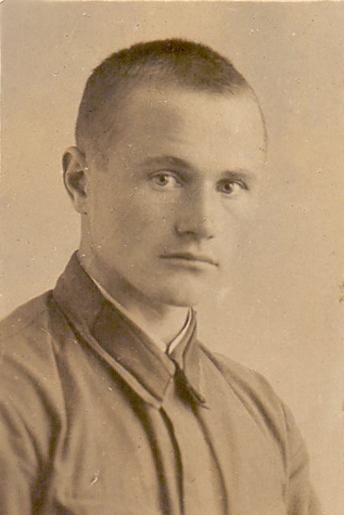 Про моего прадедушку известно, что он был стахановцем и изобрел новый метод работы с лучковой пилой. У нас есть даже газетные вырезки 30-х годов, в которых написано про моего прадедушку и есть его фотография. Из-за этого его не пускали на фронт. Два раза он просился и два раза ему отказывали. Только в 1942 году ему разрешили пройти обучение на сержанта. Его отправили в районный центр на обучение. После того как прадедушка выучился на сержанта, его на поезде вместе с остальными направили на фронт. Поезд шел мимо районного города Буя, около которого находится поселок Талица. В тот момент там жили его жена и четверо детей: три девочки и мальчик.
