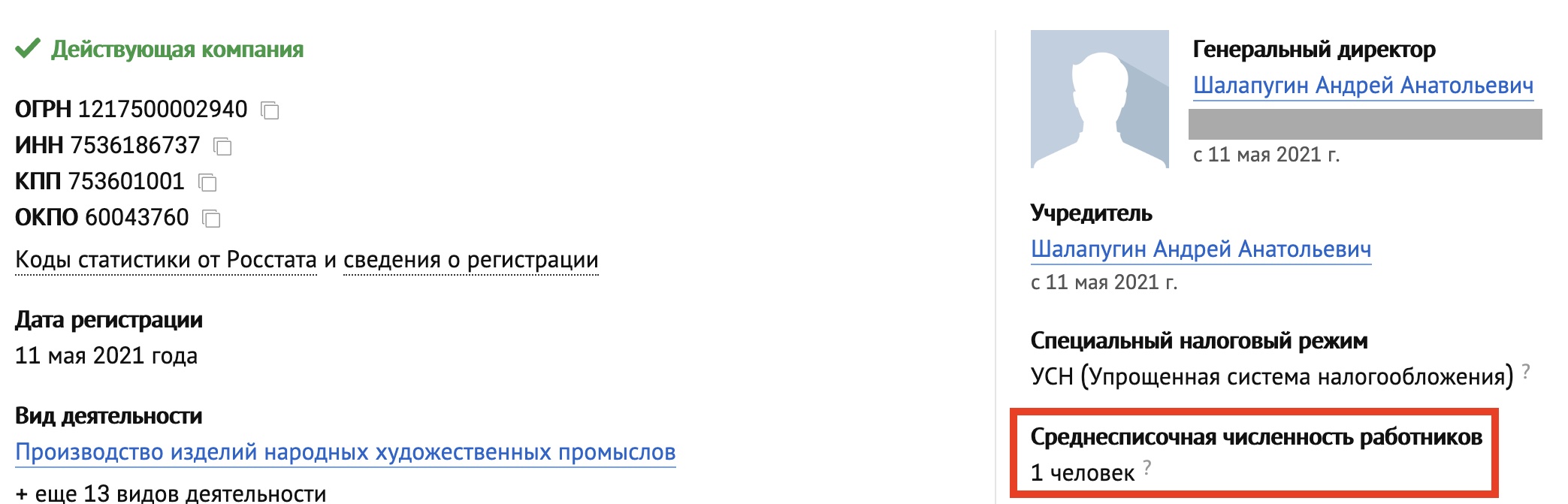 Кстати, такая численность, равная одному человеку, должна вас сразу насторожить. Если в компании оформлен только ее руководитель, то как тогда оформляют других работников? Ответ очевиден – с нарушениями закона. Либо никак, либо по договорам гражданско-правового характера, что к понятию «трудоустройство» вообще не имеет никакого отношения.