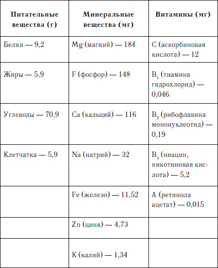 Содержание питательных веществ, минералов и витаминов в 100 г измельченного корня имбиря