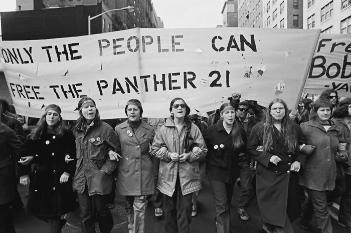 Митинг в поддержку членов группы «Пантера 21». На лозунгах: «Только люди могут освободить группу ”Пантера 21”»