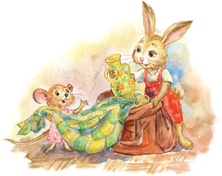 – Соня, ну зачем тебе ваза? – зайка принялась разбирать поклажу, когда пришла к мышке на следующее утро. – И три одеяла?