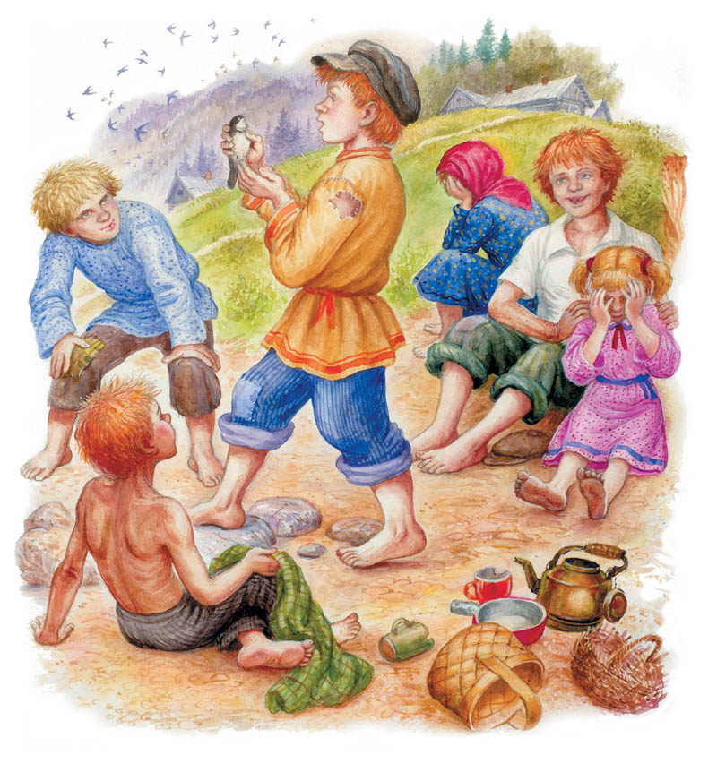 Так интересно и весело мы провели весь день, и я совсем уж забыл про ягоды. Но настала пора возвращаться домой. Мы разобрали посуду, спрятанную под деревом.