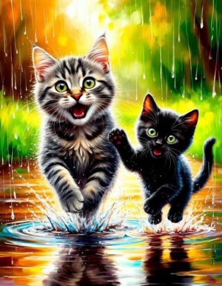 Подул сильный ветер. Набежали черничные тучи. Дождь, как весёлый барабанщик застучал своими хрустальными палочками-струями по крышам домов, по спинам ребят, мчащихся наперегонки домой. Среди них был и Ванька. Вот знакомая калитка. Ванька скрипнул её дверью и бросил велосипед под куст сирени. Несколько шагов-прыжков через пузырящиеся лужи, и он под крышей бабушкиного крыльца. Разлившийся по дому запах блинов поманил Ваньку на кухню.