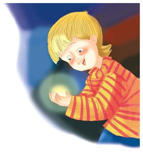 – На светлячка! Вот он, в коробочке живет. Погаси-ка свет!