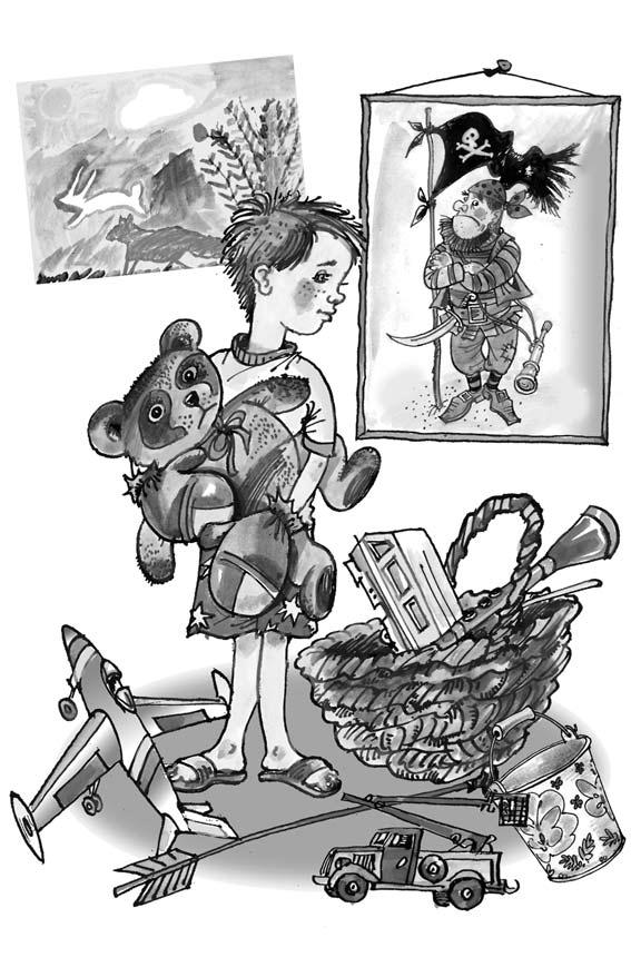 Мама стала копаться в этой корзинке, и, пока она копалась, я видел мой старый трамвайчик без колёс и на верёвочке, пластмассовую дудку, помятый волчок, одну стрелу с резиновой нашлёпкой, обрывок паруса от лодки, и несколько погремушек, и много ещё разного игрушечного утиля. И вдруг мама достала со дна корзинки здоровущего плюшевого Мишку.