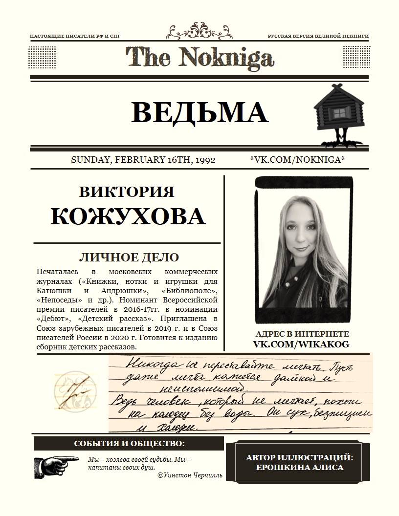 Она выглядела настолько пугающей, что он невольно отшатнулся и мысленно проклял тот момент, когда искал затерянную в лесу и, кажется, в самом времени избу с ведьмой; он вспомнил, как продирался сквозь заросли высокой травы и утопал по колено в болоте и как по этой же причине оставил свою дружину около леса, в который боялись заходить даже самые смелые охотники царя; в котором не цвели цветы и не пели птицы.