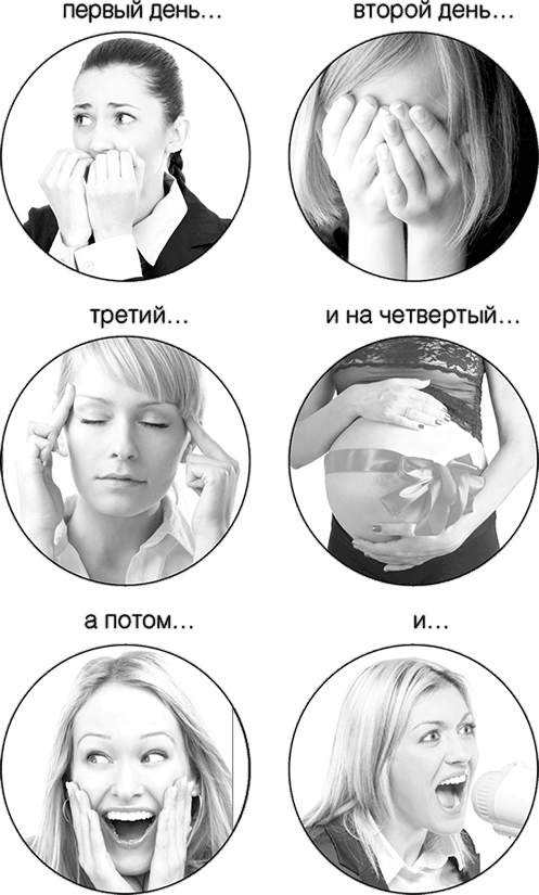 Таким образом, весь организм женщины перестраивает свою работу ввиду нового состояния. Постоянная мощная активность одного из участков мозга приводит к повышенной утомляемости (не веришь – попробуй в течение одной минуты смотреть на свой палец и думать только о нем, не отвлекаясь, у меня не вышло). Постоянное пребывание в положении «вкл.» этого участка приводит к сокращению других видов мозговой активности – отсюда рассеянность, вялость, сонливость и иже с ними. Понятно, что в таком состоянии работник из жены, как бронежилет из пластилина, поэтому период карьерной бесполезности ей обеспечен. Хорошо, если она уже знает о своем любопытном положении, иначе жалоб на черную полосу в жизни и слез по этому поводу тебе не миновать. Кстати, плаксивость очень даже в духе перемен, произошедших в организме.