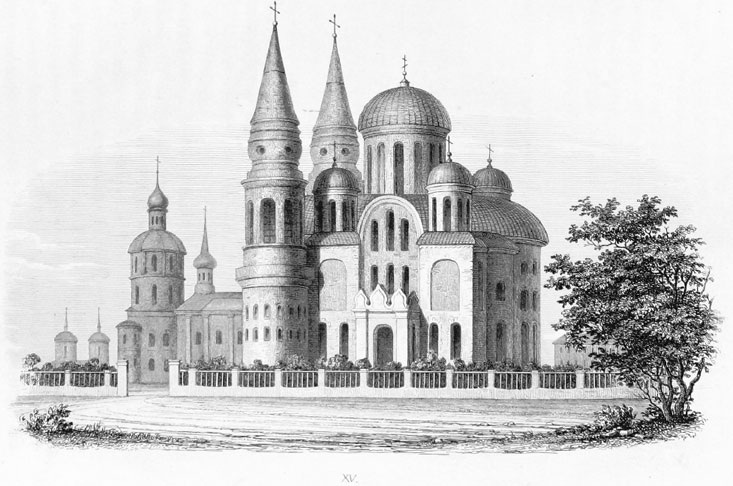 Храмы, построенные выписанными из Византии строителями, представляли собою, разумеется, точное повторение византийских храмов. Правда, ни один из этих храмов не сохранился в полной неприкосновенности до наших дней, но достаточно только взглянуть на их планы, чтобы убедиться в чисто византийском происхождении этих храмов.