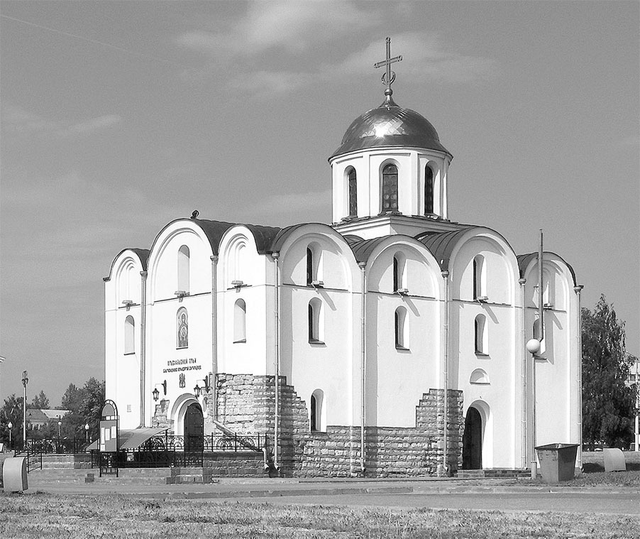 В Полоцком княжестве, далеко уступавшем по богатству Киевскому, храмы, конечно, были по большой части деревянные. И вот строители каменных храмов в этом краю перенесли в их наружный вид привычные формы деревянного зодчества. Совершается первая, несмелая еще попытка внесения в каменную архитектуру самобытно сложившихся национальных элементов.