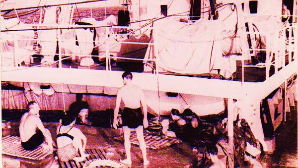 Закончив бассейн, палубная команда матросов взялась натягивать тент на деревянной палубе кормы. Здесь имелись специальные отверстия для установки металлических стоек. Стойки соединялись перекладинами и натягивался брезент – защита от безжалостного солнца. Немцы предусмотрели и этот вариант.
