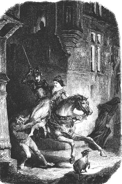 Вырвав цыганку из рук ошеломленного Квазимодо, он перебросил ее поперек седла, и в ту самую минуту, когда опомнившийся от изумления ужасный горбун ринулся на него, чтобы отбить добычу, показалось человек пятнадцать-шестнадцать вооруженных палашами стрелков, ехавших следом за своим капитаном. То был небольшой отряд королевских стрелков, проверявший ночные дозоры по распоряжению парижского прево мессира Робера д’Эстутвиля.