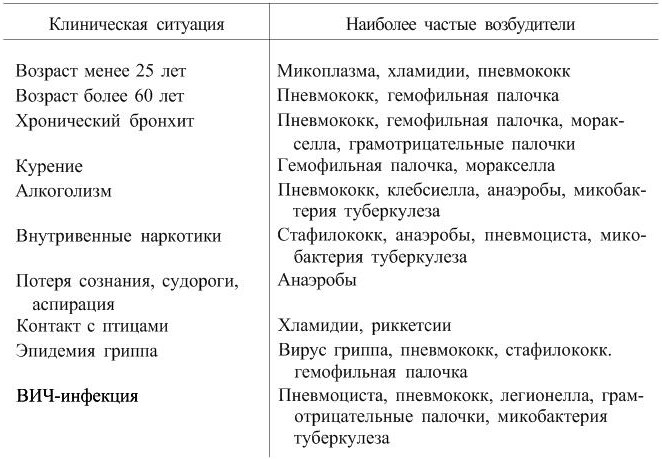 Клинические ситуации при внебольничных пневмониях (по В. Е. Ноникову, 2000)