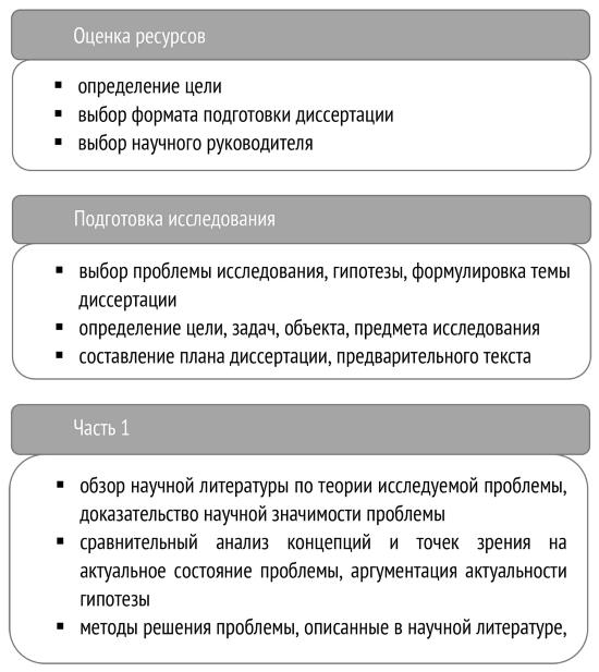 Дополнив исследовательский цикл организационными процедурами подготовки научно-квалификационной работы (НКР), можно представить главные вехи плана подготовки диссертации (рис. 1.2).