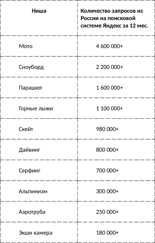 Если мы возьмём статистику по нишам, которые можно отнести к тренду «экстрим», то эта цифра окажется в разы больше.