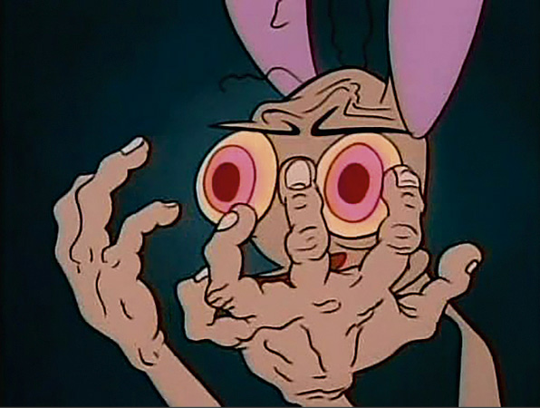 Рейджфейсы не возникли на ровном месте. Еще в 1991-м чем-то подобным занимался Джон Крисфалуси (John Kricfalusi), автор анимированного сериала «Шоу Рена и Стимпи». Его визитной карточкой стала гипертрофированная мимика в сочетании со столь же гипертрофированным натурализмом – избыточно подробными гротескными изображениями засохших соплей, волосяных луковиц, больных десен, глазных кровеносных сосудов и т. д. Впечатляющая изобретательность крупных планов в «Рене и Стимпи» неслучайна: Крисфалуси запрещал аниматорам использовать одно и то же выражение лица дважды, и каждый крупный план стремился перещеголять все предыдущие. Дело Крисфалуси продолжил Стивен Хилленберг (Stephen Hillenburg), создатель сериала «Губка Боб Квадратные штаны». Если «Рен и Стимпи» задумывался как издевательство над мультфильмами для детей, то «Губка Боб», сделанный как раз для них, был на порядок спокойнее – и всё равно вызывал эстетический шок у консервативных родителей.