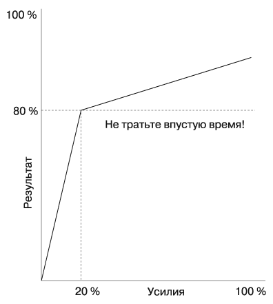 Это одно из проявлений принципа Парето (правила «80/20»): 20 % дел дают 80 % результата (рис. 1.1).