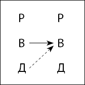 В этом и следующих случаях открытые (явные) трансакции имеют вид: В → В (передача информации).