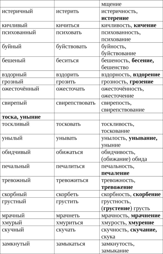 Все однозначные слова связаны только с человеком и являются характеристикой внутренних процессов происходящих в человеке, которые проявляются в его внешних действий.