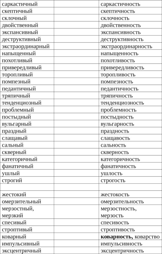 Двузначные слова, также как и однозначные, имеют деление на черты характера и действия.