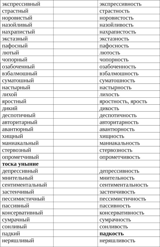 В дальнейшем нейтральные слова и двузначные по отношению к греху и добродетели, мы не приводим из-за их большого количества.