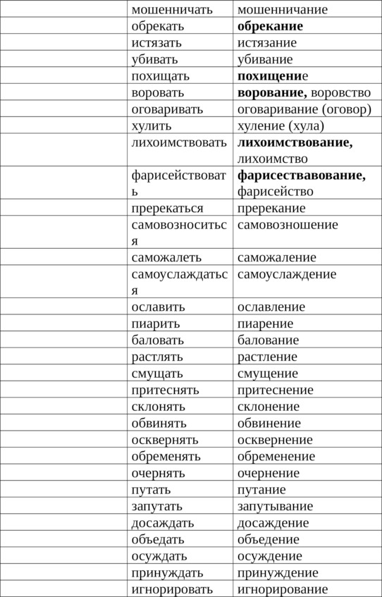 За помышлением (развратность) следует действие (развращение). Но как видно по таблице, слова греха в действии не всегда прямолинейно связаны со словами греха в характеристике.