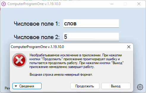 Рассмотрим значительный дефект на том же примере программы для сложения чисел. Кнопка «Сложить» работает: мы вводим числа в поля для ввода и нажимаем на неё. Программа складывает числа и выводит результат сложения, однако при этом программа перестаёт отвечать на действия пользователя на определённое время (зависает). Через минуту программа снова начинает отвечать на действия пользователя. И так происходит после каждого сложения.