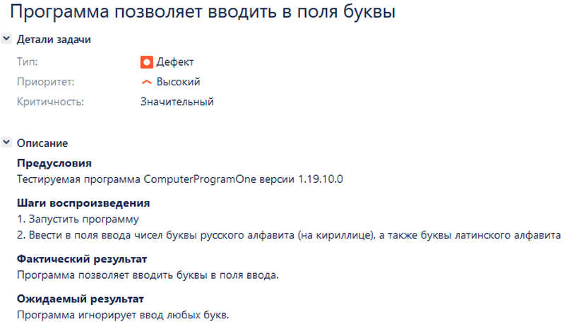 Если рассматривать приведённый пример с программой сложения чисел, пользователь ожидает, что, введя два числа и нажав на кнопку сложения, получит результат сложения. Однако его ждёт разочарование, так как программа будет вычитать и выводить результат вычитания, а это означает, что она не сможет выполнять требуемую от неё функцию. Почему? Потому что на этапе разработки допустили ошибку, и пользователь столкнулся с последствиями ранее допущенной ошибки – с дефектом в программе.