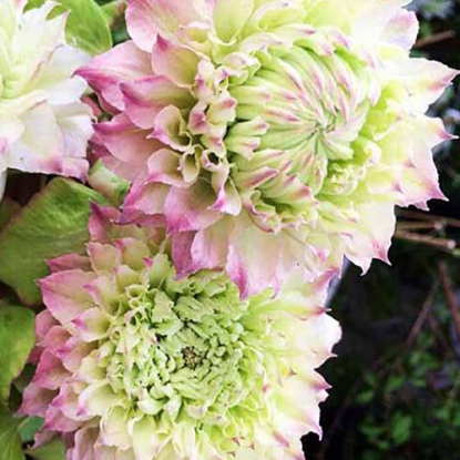 Жакмана. Многочисленные сорта представляют собой полудревянистые или травянистые лианы с побегами 3–4 м длиной и цветками диаметром 10–16 см, которые распускаются на побегах текущего года. Преобладают сине-фиолетово-пурпурные тона. Цветение обильное – с июля и до середины сентября.