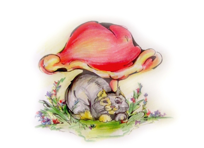 Кот выпрыгнул из-под большого красного гриба и побежал впереди, теперь то и ему перестало быть страшно, раз друг не боится.