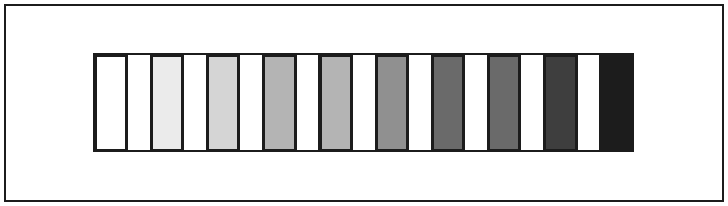 Характеристика ахроматического рядаРяды ахроматических цветов также постепенны и непрерывны, как и все другие ряды цветов. Между идеально-черным и идеально-белым можно вставить бесконечно большое число средних ступеней, близких друг к другу настолько, что разница между ними будут лежать ниже порога.