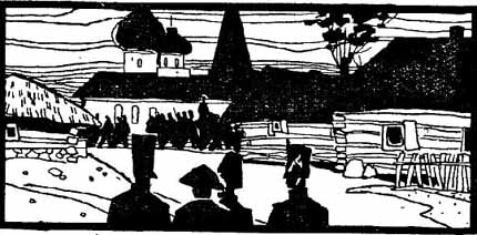 Едва сентябрьское солнце озарило утренними прозрачными лучами вершины рябин с красными кистями, как воздух прорезали звуки военного рожка. Заиграл хор трубачей, и старинная русская усадьба, дремавшая в утреннем тумане, ожила и заволновалась. Эскадроны французской гвардейской конницы наскоро строились в колонну и вдогонку Великой армии выступили по узкой дороге по трое рядами. Голова колонны уже спускалась по косогору, мимо пруда, минуя село, тихое и безлюдное, без единого дымка, и вошла, скользнув вереницею, в промежуток между высокими каменистыми грядками и холмами, поросшими молодым дубом, держа путь на Можайскую дорогу. Прошло десять минут. Колонна, извиваясь, как змея, растянулась уже на целый километр, когда между каменными столбами полуразрушенной дворянской усадьбы, в большом разрыве между хвостом ранее выступившей и головой новой колонны, показался всадник на белой лошади, щуривший глаза и морщивший лоб, осматривая дорогу навстречу солнцу. За ним в расстоянии ста шагов ехала большая группа пестро одетых людей, не державших кавалерийского строя. Это был Бонапарт, и за ним генералитет Великой армии. Сильно простуженный полководец, усталый и не выспавшийся после Бородина, в этот день чувствовал себя бодро. Генералы ликовали. Был последний переход на Москву.