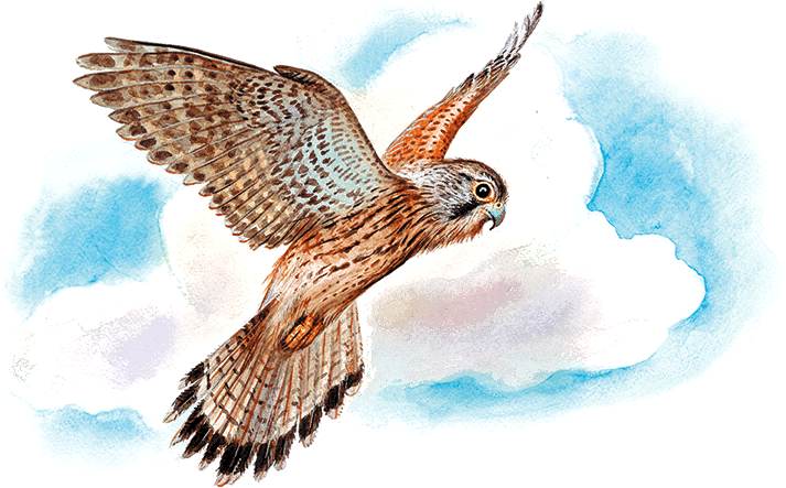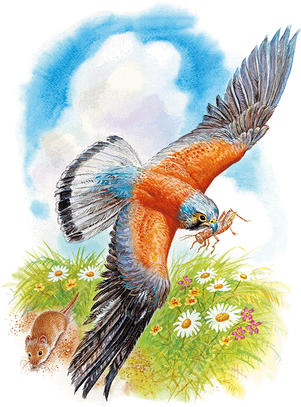 Пик видел вдали над лугом маленького сокола-трясучку, но не боялся его. Трясучка – птица величиной с голубя, только потоньше, – неподвижно висела в пустом воздухе, точно подвешенная к небу на верёвочке. Только крылья у неё чуть-чуть тряслись, да голову она поворачивала из стороны в сторону.