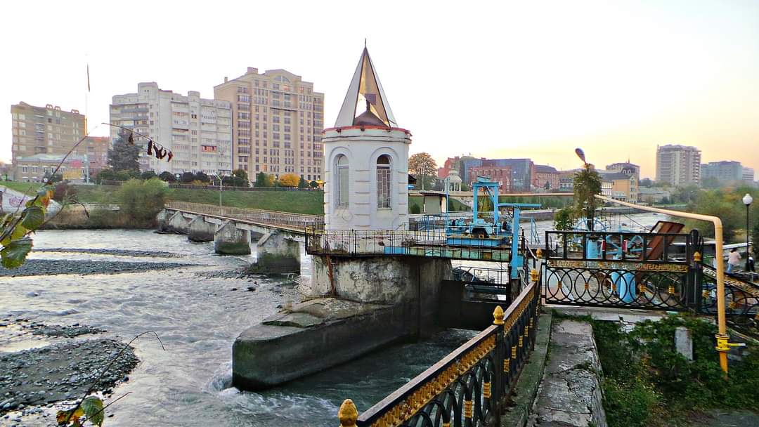 Все теснее сдвигаются, прячась за избушкой. Делия с Розой выходят из подъезда и направляются со двора к дороге. Шпионы следуют за ними. Делия с матерью идут через парк и выходят на набережную Терека. Ребята продолжают слежку, прячась за деревьями, потом за решеткой старых водоочистных сооружений. На ходу кто-то вынимает телефон, остальные машут ему, чтобы выключил. Все достают свои телефоны и выключают звук. Делия и Роза доходят до водозабора – маленькой круглой башенки со стрельчатыми окнами и остроконечной крышей, которая установлена на краю узкого гидротехнического мостика через реку. К домику ведут металлические ступени, рядом на площадке – два больших ржавых колеса для подъема и опускания шлюзов. Домик выглядит заброшенным, света нет, площадка перед ним огорожена, калитка к ней заперта, на ней висит замок. Набережная освещена фонарями, но на сооружения водозабора света попадает совсем мало. Делия и Роза останавливаются и озираются. Ребята прячутся за кустами, Делия и Роза проскальзывают под металлический мостик и исчезают в темноте. Ребята переглядываются.