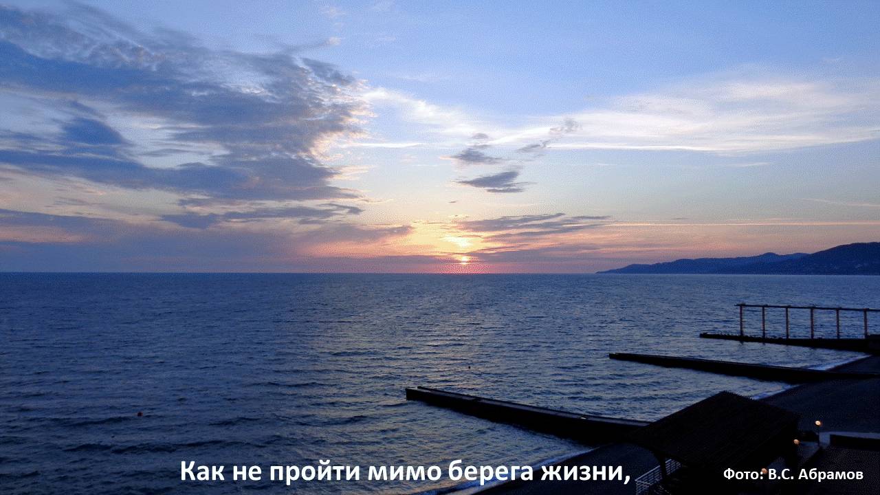 Берег жизни манит познаньем,Что ты узнаешь, достигнув его?Может он даст тебе новые чувства,Может заставит подумать о том:Что ты познал, а что не изведал,Что тебя ждёт, если бросишь ты всё,Что так привычно и так повседневно,Что не даёт тебе то, что ты ждёшь?Что же ты хочешь, а что отвергаешь,И почему не находишь ответ?Может быть надо подумать и взвесить,Что тебе дорого, что вовсе нет?Может привычное вовсе не главное?Может быть надо всё в корне менять,Или пойти по дороге познанья,Или смириться, или восстать?Вновь мы уходим к берегу жизни,Вновь мы стремимся к заветным мечтам,Вновь мы выносим судьбы испытанья,Вновь познаём и меняем себя.Кем же нам быть в этом сложном мире?Как сохранить Любовь?Как не пройти мимо берега жизни,Который приносит Добро.Как не пройти мимо берега жизни,Где сохранишь Любовь.Посмотрите на эти фотографии и вспомните о тех удивительной красоты местах нашей любимой Родины, где ВЫ, уважаемый читатель, были или мечтаете вновь побывать.