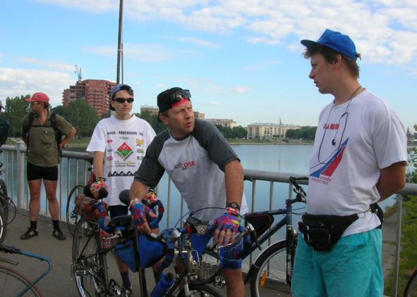 Последние уточнения, общение с прессой проявившей интерес к нашей идее. Немало провожающих пришло к месту старта поддержать своих друзей и близких. Договариваемся с Алексеем Белашовым об открытии ветки форума для публикации репортажей с марафона, которые будут поступать с мобильных телефонов участников. Пусть это поможет «раскрутке» сайта «ВелоПенза» созданного недавно.